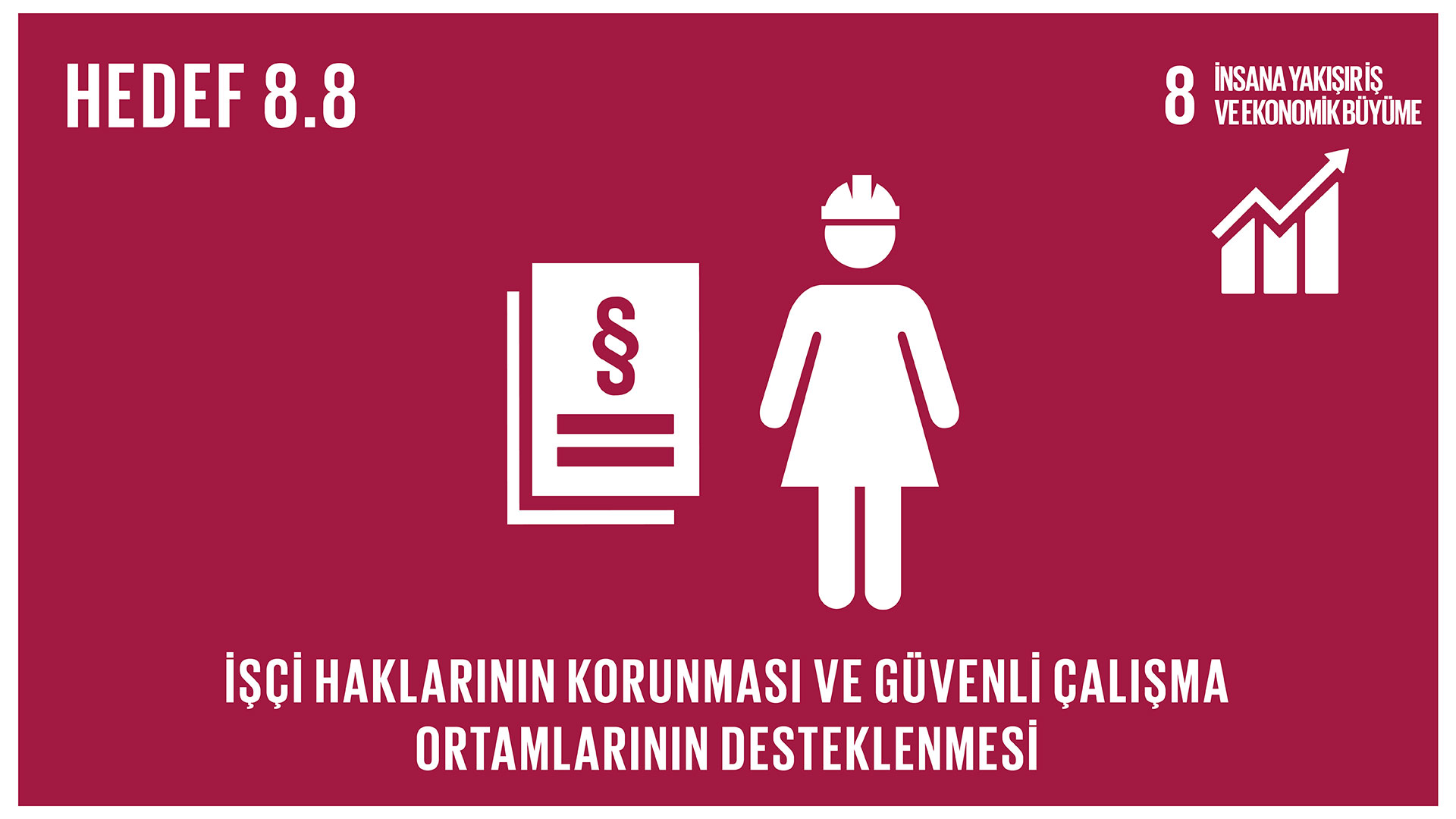 8.8. Çalışanların haklarının korunması ve özellikle kadın göçmenler olmak üzere göçmen işçiler ve güvencesiz işlerde çalışan insanlar dâhil bütün çalışanlar için güvenli çalışma ortamlarının geliştirilmesi